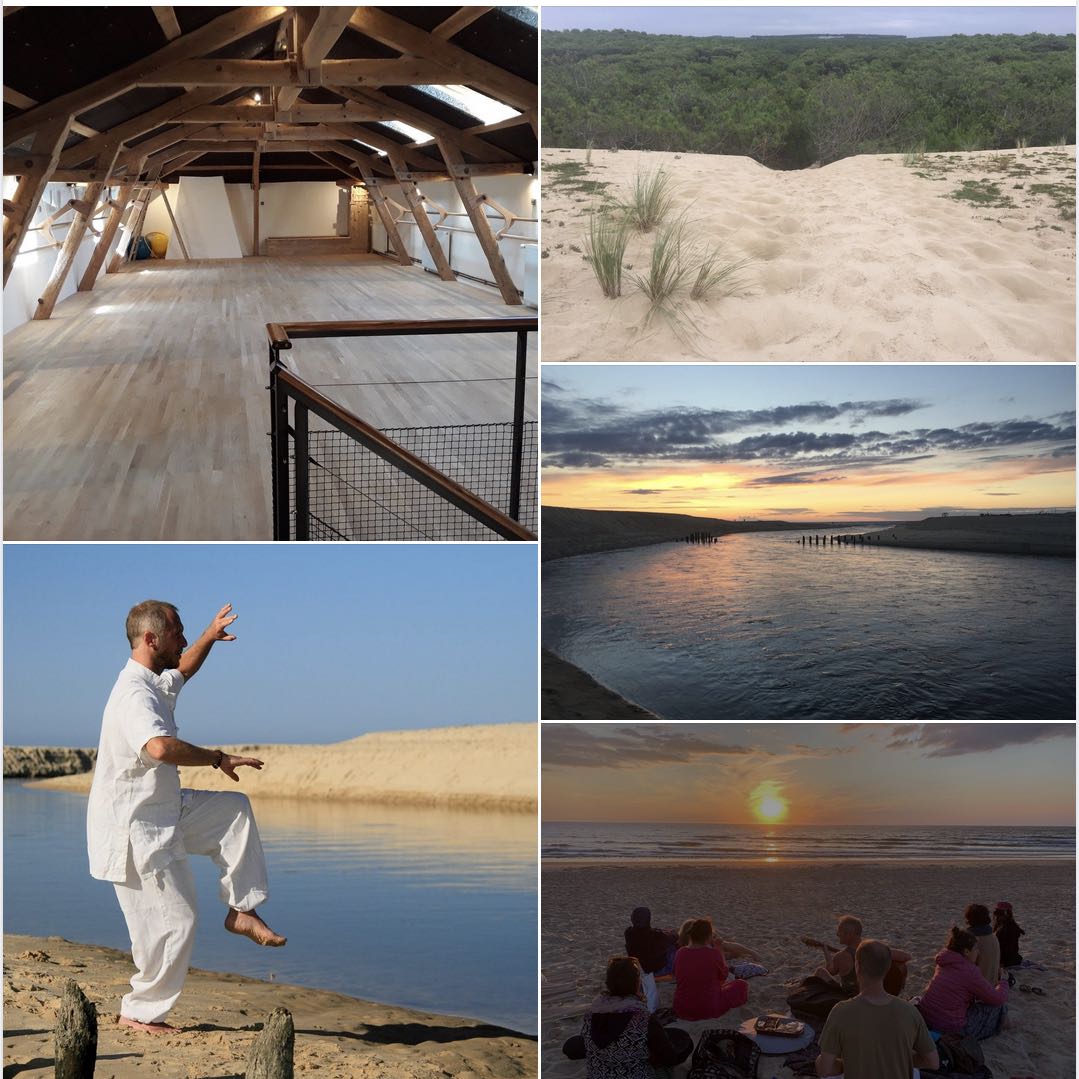 Baignades, Qi gong, partages musicaux dans l’instant, devant le couché de soleil !